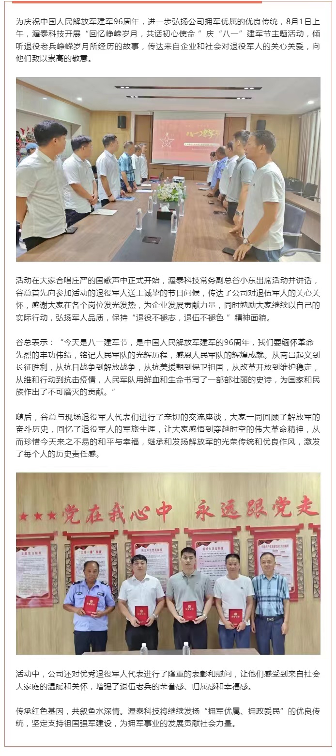 渥泰科技开展庆“八一”建军节主题活动