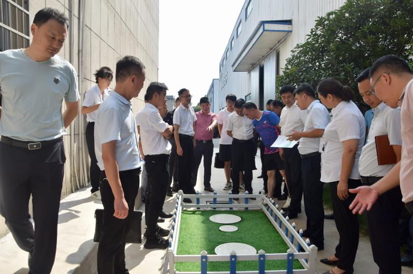 ▲领导在公司污水处理设备示范点现场观摩了设备运行情况