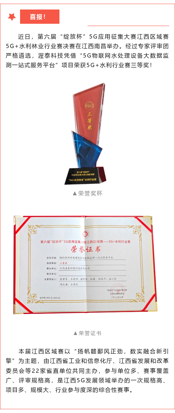 渥泰荣获“绽放杯5G应用征集大赛江西水利行业赛三等奖
