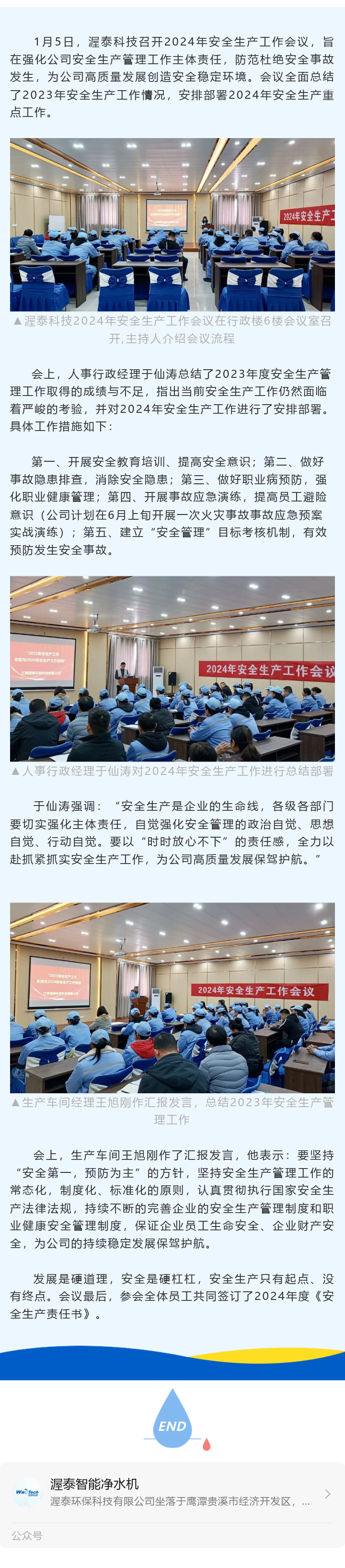 【概要描述】 1月5日,渥泰科技召开2024年安全生产工作会议,旨在强化公司安全生产管理工作主体责任,防范杜绝安全事故发生,为公司高质量发展创造安全稳定环境。会议全面总结了2023年安全生产工作情况,安排部署2024年安全生产重点工作